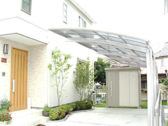シンプル&ナチュラルな住宅に物置が主張することなく、環境に溶け込んでいますね。