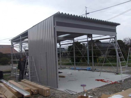 これほど大型なタイプの倉庫を組み立てるには、みなさん相当に息のあった方々なのですね!