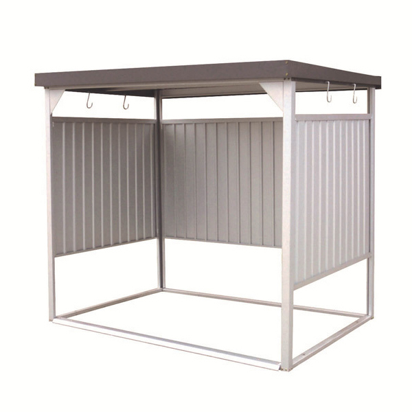 ガルバリウム鋼板使用で錆びにくく、高級感のある質感で、物干し竿などを引っ掛けることのできるフック4本付き。転倒防止金具も付属していますのでしっかり固定できて安心。