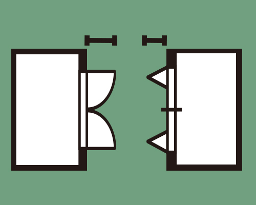 スライドタイプの場合は問題ありませんが、ドアタイプの物置の場合、扉を開けるためのスペースが必要です。壁と壁に挟まれた狭い場所の場合は特にご注意下さい。