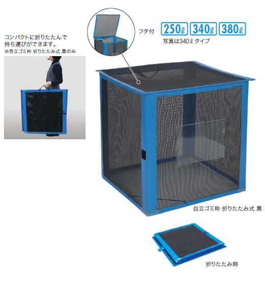 自立ゴミ枠 折りたたみ式 容量250リットル 黒 DS2610119 幅600×奥行600×高さ700mm