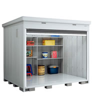 <こんなときはシャッター物置が便利です>・大きくてかさばるような物を保管したい場合・防災資材置き場など、複数人で出し入れ作業をする場合・バイクや農機具など重量物を入れたい場合(→床タイプは床が凹んでしまうので土間タイプがお勧めです)・倉庫のように広い保管スペース/作業スペースとして使いたい場合(→連棟ならより広く使えて便利!)シャッター物置シリーズ>>