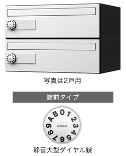 【2戸用】【本体再生樹脂製】ナスタ 集合郵便受箱 前入前出 D-ALL 静音大型ダイヤル錠 ホワイト KS-MB4001P-2L-W ※受注生産品