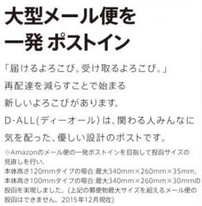 新型では、奥行や投入口を見直すことで、大型郵便(日本郵便株式会社が推奨する規格)に対応する集合ポストを実現しています。