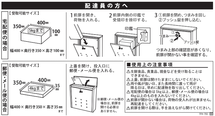 分かりやすいですね!今話題の宅配ボックスにご興味がございましたら、まずこの商品で試してみるのはいかがでしょうか?