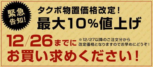 タクボ物置購入検討中のお客様は、26日までのご注文をおすすめします。