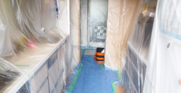 また、薬剤を使用し、作業員が泥だらけで出入りをしなくてはなりませんので 床や壁を汚さぬよう徹底した養生を行います。