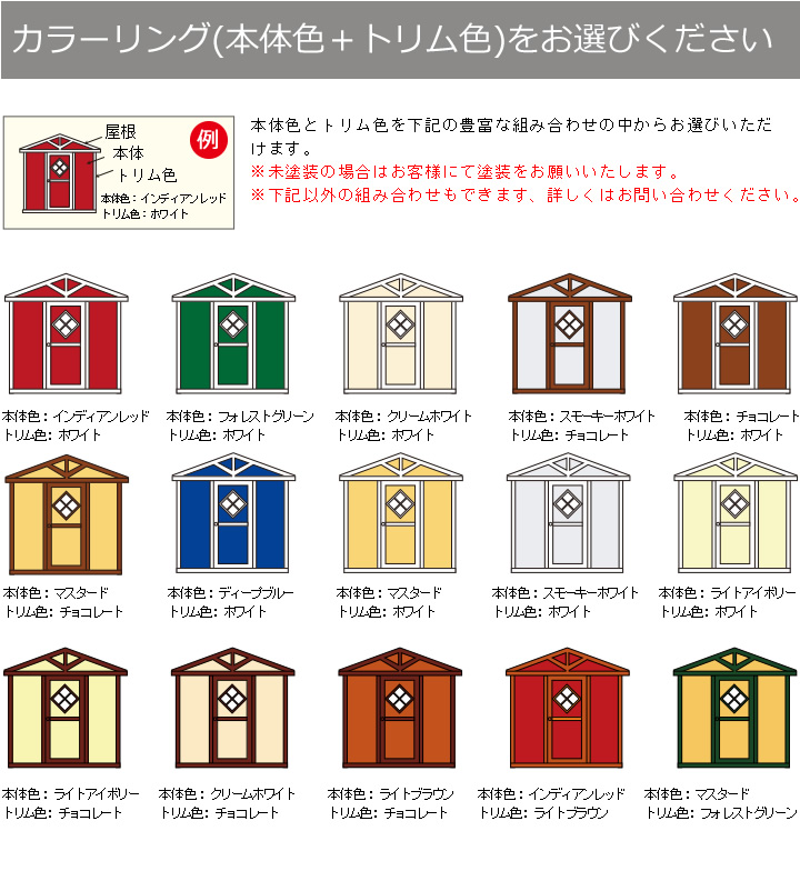 塗装・組立用に半完成品でお送りするため、納期に2~3週間お時間をいただきますが、色や屋根などお客様のお好みに合わせて「こだわりの物置」としていかがでしょうか。