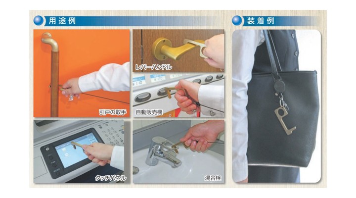 エレベーターや電車の吊り革、自販機のボタンなど、直接触れる必要がある部分への接触を軽減するタッチレスツールです。