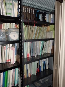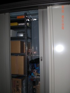 中へ汎用のスチール棚を2台組み込むと書類は沢山入る。