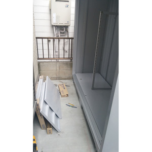 コンクリの地面が歪んでましたので倉庫のバランスをとるのに手間取ってしまいました。