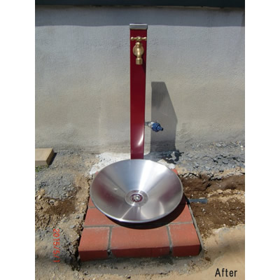 【廃番】水栓柱一式セット ウォータースタンド Spre スプレスタンド ダークレッド 蛇口1個セットASP-S102+シャインポット ステンレスシルバーの施工事例
