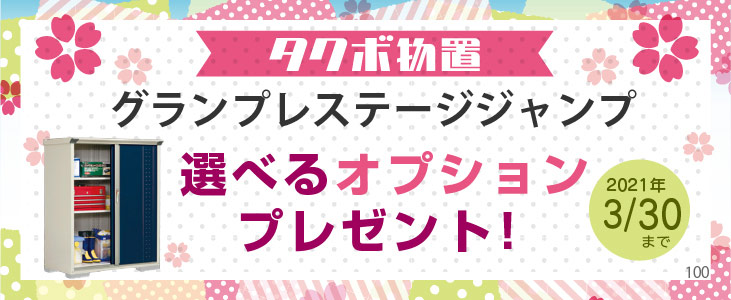 【終了】「タクボ物置 グランプレステージジャンプ 選べるオプションプレゼント!」キャンペーン開催中