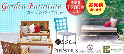 高級リゾート向けのファニチャーセットや、オープンテラスのカフェにピッタリのガーデンチェアーなど、ラグジュアリーで高品質なブランド品からご家庭で使用できるお手頃価格ものまで幅広く取り扱っております。