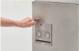 - 「使用中(赤色)」表示の場合、付属の専用キーでシリンダー錠※2を回し、扉を開けます。