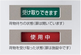 - 荷物を取り出し閉めます。「使用中(赤色)」の表示が「受け取りできます(緑色)」に戻っているか確認します。