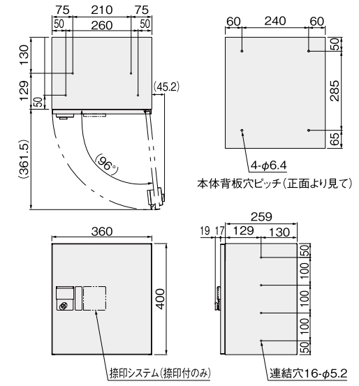 • 捺印システムは、居住者の受領印を代行する物なので、必ず1ヶ所設置して下さい。