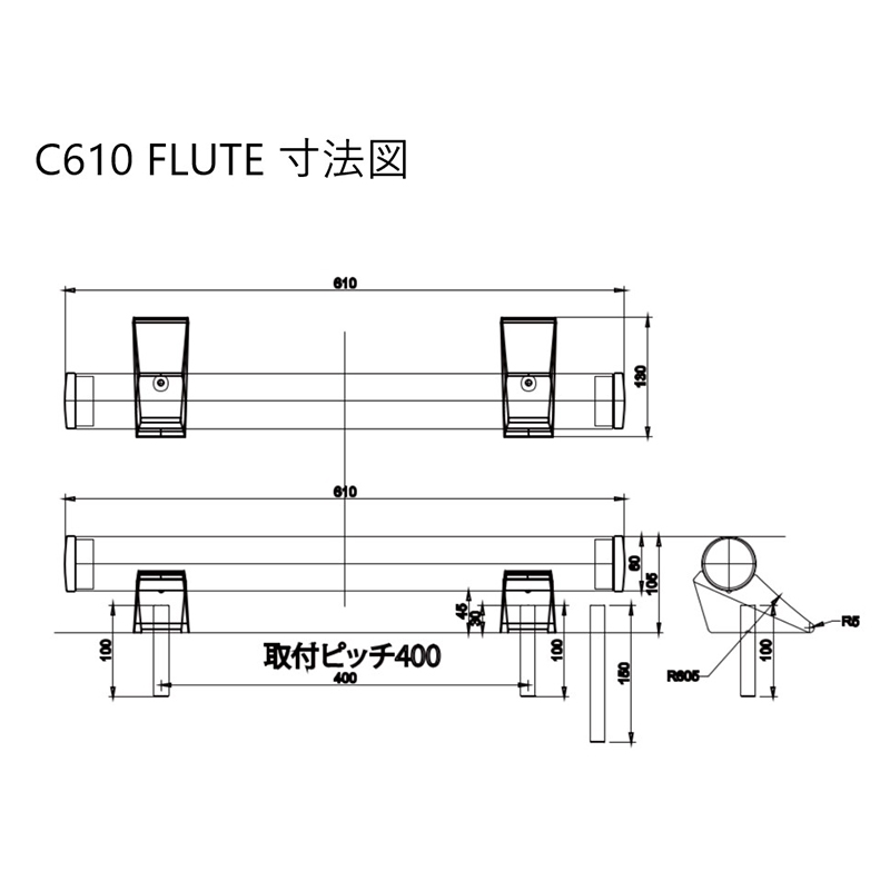 駐車ポール 車止め アルデコール フルート リミテッド C610 1本 ゴールドメタリック エンドキャップ:ブロックカット ALD-C610LKGMBの通販は環境生活