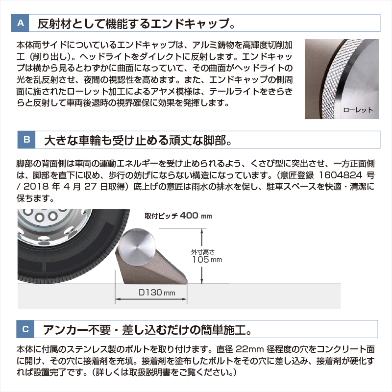 駐車ポール 車止め アルデコール フルート リミテッド C610 1本 ゴールドメタリック エンドキャップ:カーボンプレート ALD-C610LKGMCの通販は環境生活