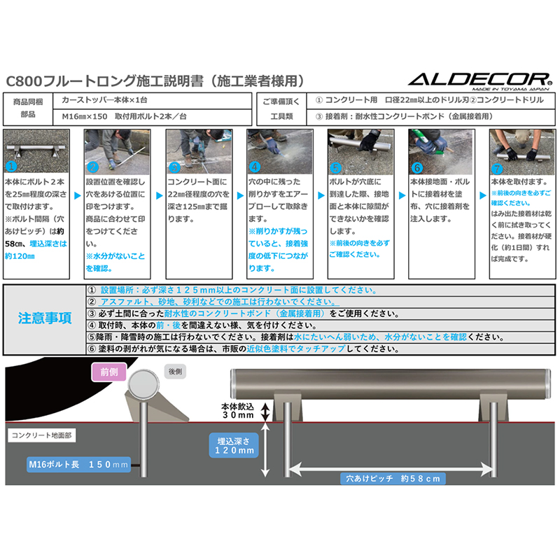 駐車ポール 車止め アルデコール フルート リミテッド C800 1本 ゴールドメタリック エンドキャップ:ブロックカット ALD-C800LKGMBの通販は環境生活