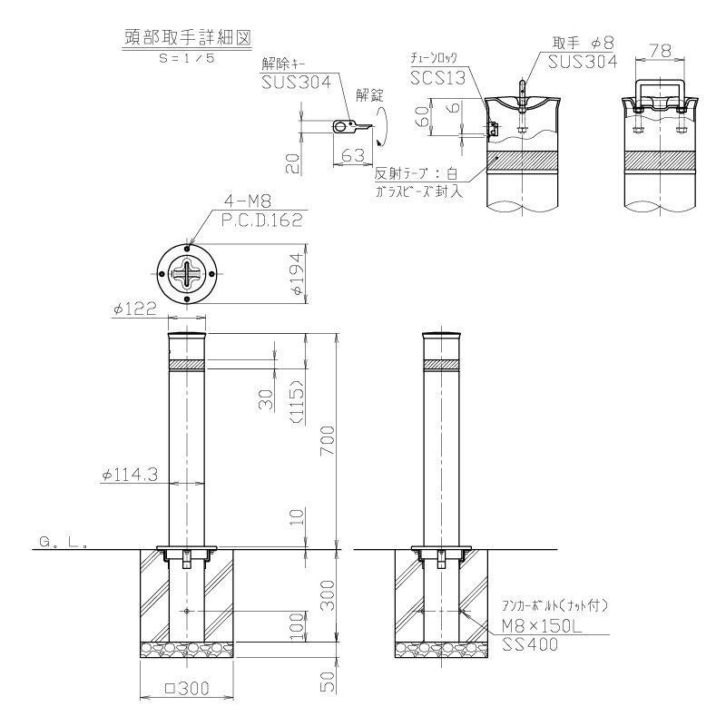 駐車ポール サンポール リフター Φ114.3 固定式 エンド用 LA-12UC-E 車止め 駐車場 ポール ステンレスの通販は環境生活