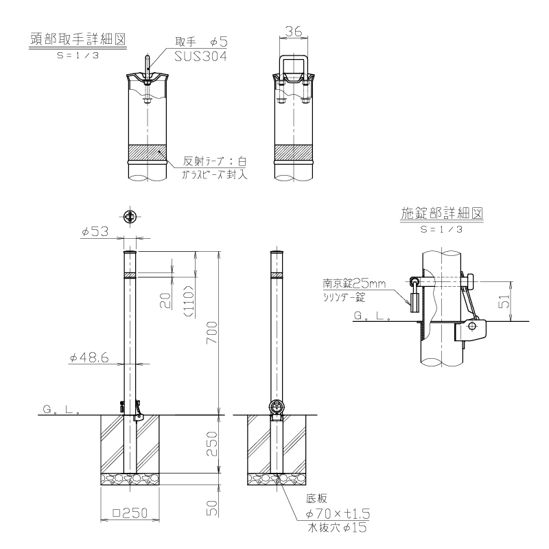 駐車ポール サンポール リフター Φ48.6 差込式カギ付 LA-5SK 車止め 駐車場 ポール ステンレスの通販は環境生活