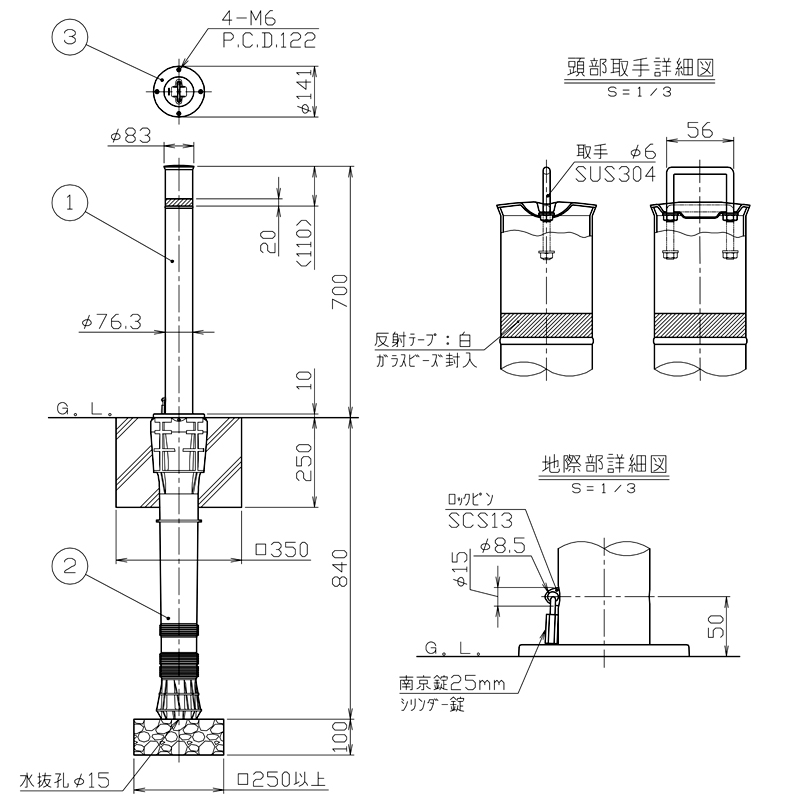 駐車ポール サンポール リフター φ76.3 上下式 標準タイプ カギ付 LA-8K 車止め 駐車場 ポール ステンレスの通販は環境生活