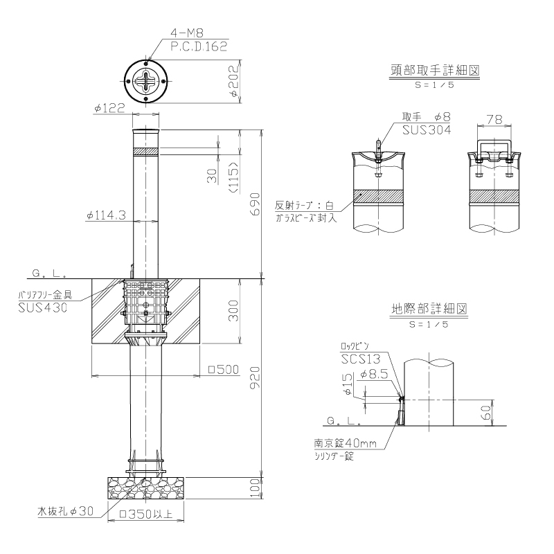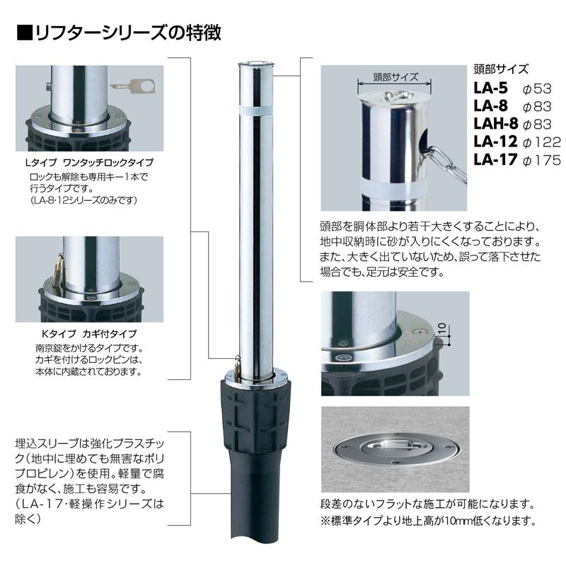 上下式(専用固定式あり) サンポール リフター φ114.3 上下式 バリアフリータイプ カギ付 LA-12K-BF 車止め 駐車場 ポール ステンレスの通販は環境生活
