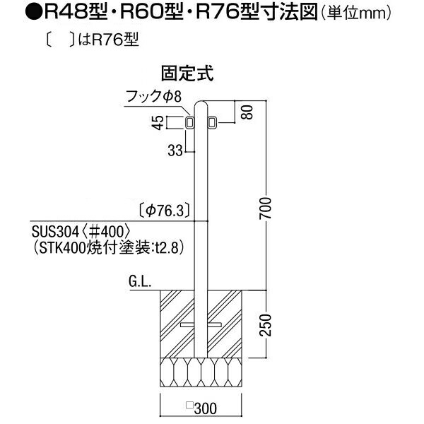 固定式(ピラー型) 駐車場ポールLIXIL スペースガード(ステンレス) R48型 固定式 両フック LPA31 KSKの通販は環境生活
