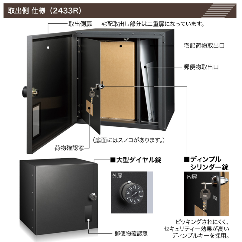 宅配ボックス コーワソニア 宅配ポスト2433R 右開き ラスティブラウン 宅配ボックス ポスト 大容量 大型 ポスト一体型の通販は環境生活