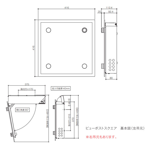 デザイン 郵便ポスト 住友林業緑化 ビューポスト スクエア 上入前出 ワインレッドパネル 本体ブラック 左吊元 SQ-RB-Lの通販は環境生活