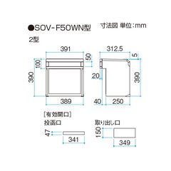 シンプル&モダン 郵便ポスト 三協アルミ ポスト 埋込み型口金タイプ SOV-F50WN型 首長さ50mm 2ブロックタイプ ブラック(MKC) KSKの通販は環境生活