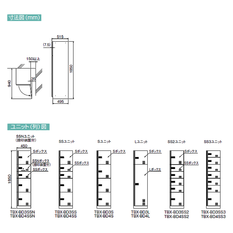 宅配ボックス ダイケン宅配ボックス プッシュボタン錠(電池式)タイプ BD4型 スチール扉(ステンカラー) Lユニット 捺印装置無し TBXーBD4Lの通販は環境生活