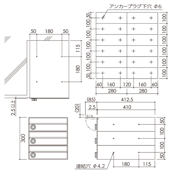 TOP > 郵便ポスト・郵便受け > 集合住宅用ポスト > 3戸タイプ