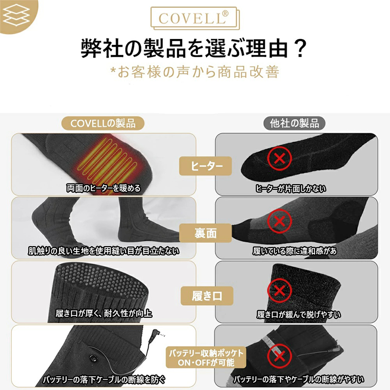 ガーデン・水まわり 電熱ソックス G.B.Z COVELL(コベル) ブラック 2足セット 温度調整 バッテリー着脱 洗濯機使用可能 冷え性対策 寒冷地 作業 現場 屋外 アウトドアの通販は環境生活