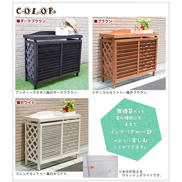 雨風で汚れがちな室外機をさりげなく、おしゃれにカバーします。