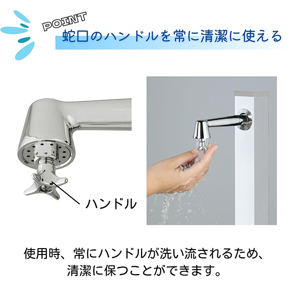 使用時、常にハンドルが洗い流されているため、清潔に保つことが出来ます。