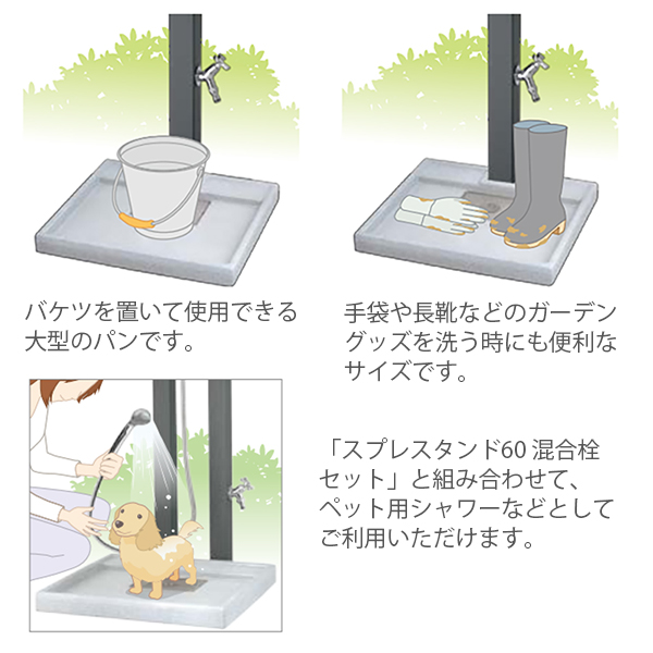 スプレスタンド60混合栓セットと組み合わせてペット用シャワーなどとしてご利用いただけます。