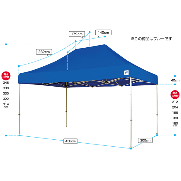 アウトドア イージーアップテント デラックスアルミフレーム 3.0m×4.5m DXA45-17-RD レッド かんたんテント日よけの通販は環境生活