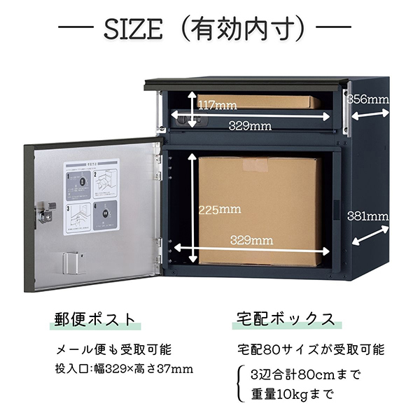 戸建用宅配ボックス ユニソン コルディア80ライト 右開きタイプ 前出し マットグレー 323162120 宅配ボックス 戸建て 大容量 郵便ポスト ポスト付きの通販は環境生活