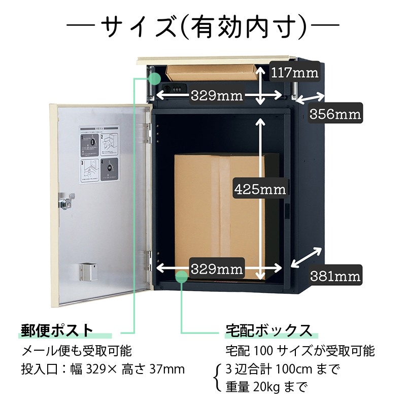 戸建用宅配ボックス 宅配ボックス ポスト付 ユニソン コルディア100ライト 左開きタイプ 前出し マットブラック一戸建て用 大容量の通販は環境生活