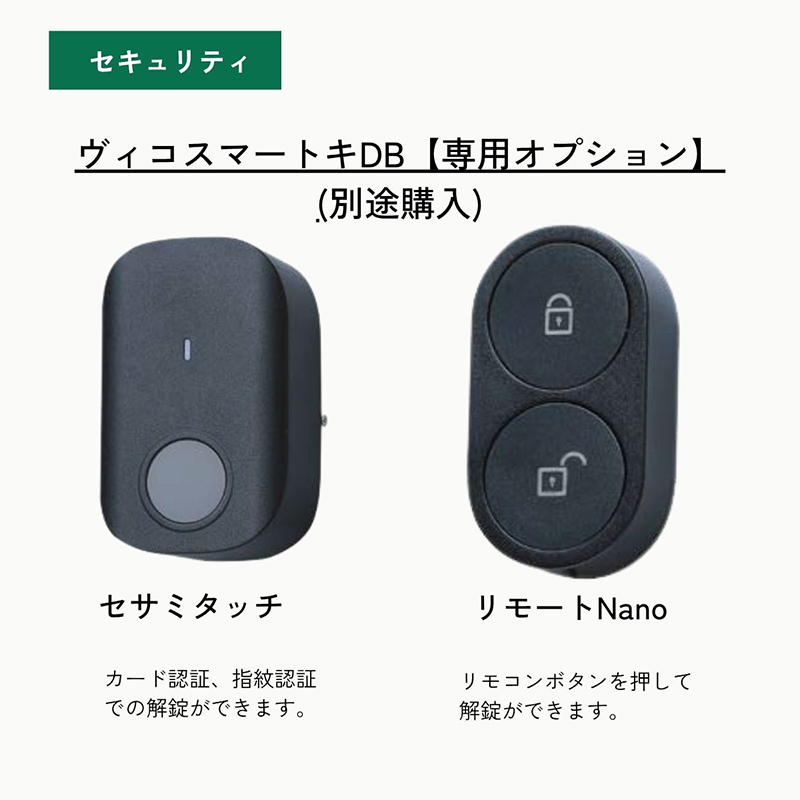 オプション品を使えば、お手持ちのICカードで解錠できるほか、指紋認証やリモコン操作など、暮らしに合わせた解錠方法もお選びいただけます。