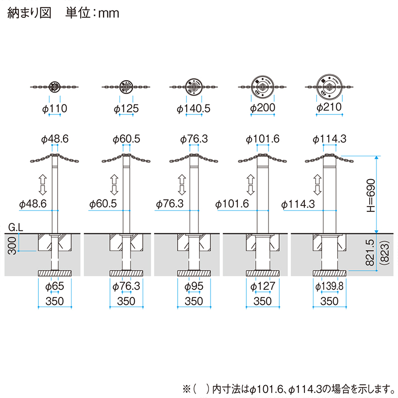 車止め ビポール Φ101.6 チェーン通過型 上下式 BTB-101UDN 車止め 駐車場 ポール ステンレス KSKの通販は環境生活
