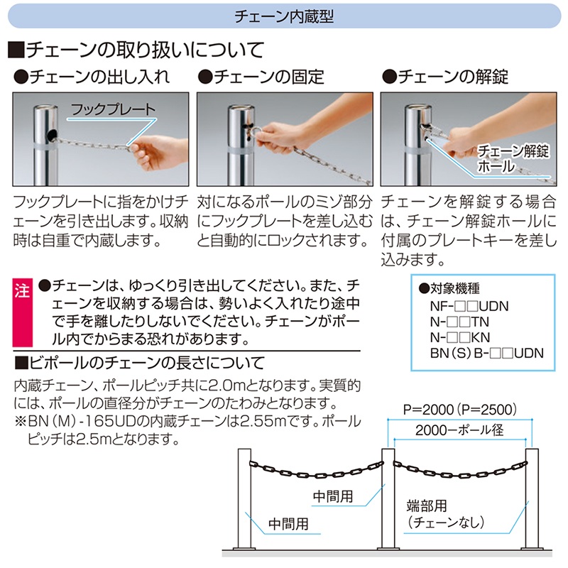 車止め ビポール 交換ポール Φ60.5 チェーン内蔵型 上下式(スプリング内蔵) BNSB-60UDXN 車止め 駐車場 ポール ステンレス KSKの通販は環境生活