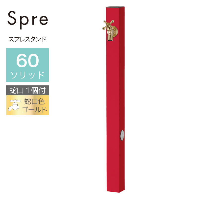 水栓柱 立水栓 水栓柱 2口 ユニソン スプレスタンド60ソリッド 左右仕様 ロッソ 蛇口1個 ゴールド 屋外 水道の通販は環境生活