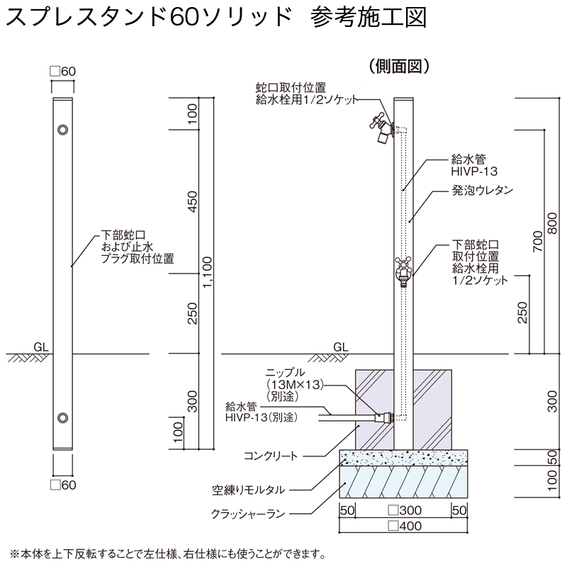 水栓柱 立水栓 水栓柱 2口 ユニソン スプレスタンド60ソリッド 左右仕様 ロッソ 蛇口2個 シルバー 屋外 水道の通販は環境生活