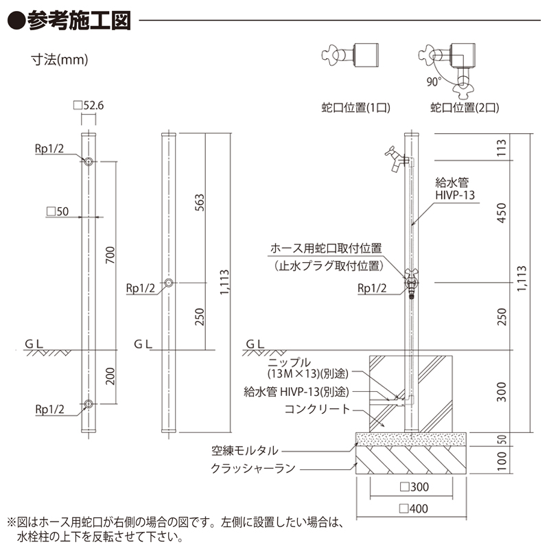 水栓柱 立水栓 水栓柱 2口 ユニソン スプレスタンド50 左右仕様 シルバー 蛇口なし 屋外 水道の通販は環境生活