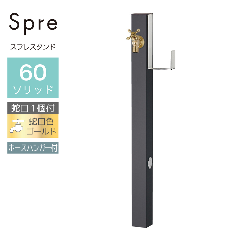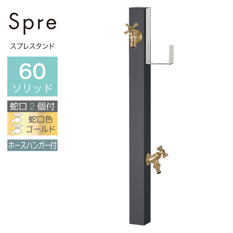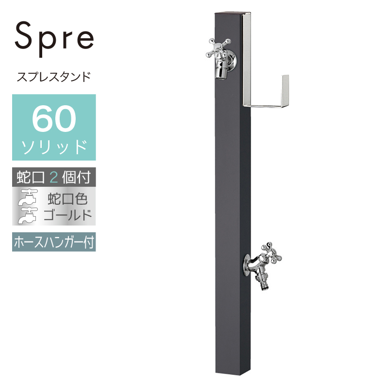 水栓柱 立水栓 水栓柱 2口 ユニソン スプレスタンド60ソリッド ホースハンガーセット 左右 オフブラック 蛇口1個セット シルバー 屋外 水道の通販は環境生活