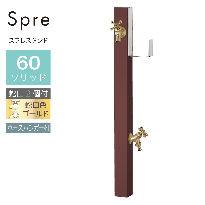 水栓柱 立水栓 水栓柱 2口 ユニソン スプレスタンド60ソリッド ホースハンガーセット 左右 オフブラウン 蛇口2個セット ゴールド 屋外 水道の通販は環境生活