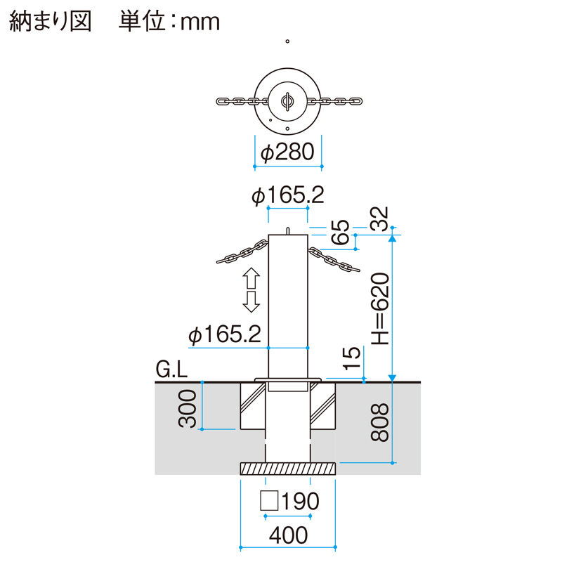 車止め ビポール Φ165.2 チェーン内蔵型 上下式 BN-165UD 車止め 駐車場 ポール ステンレス KSKの通販は環境生活